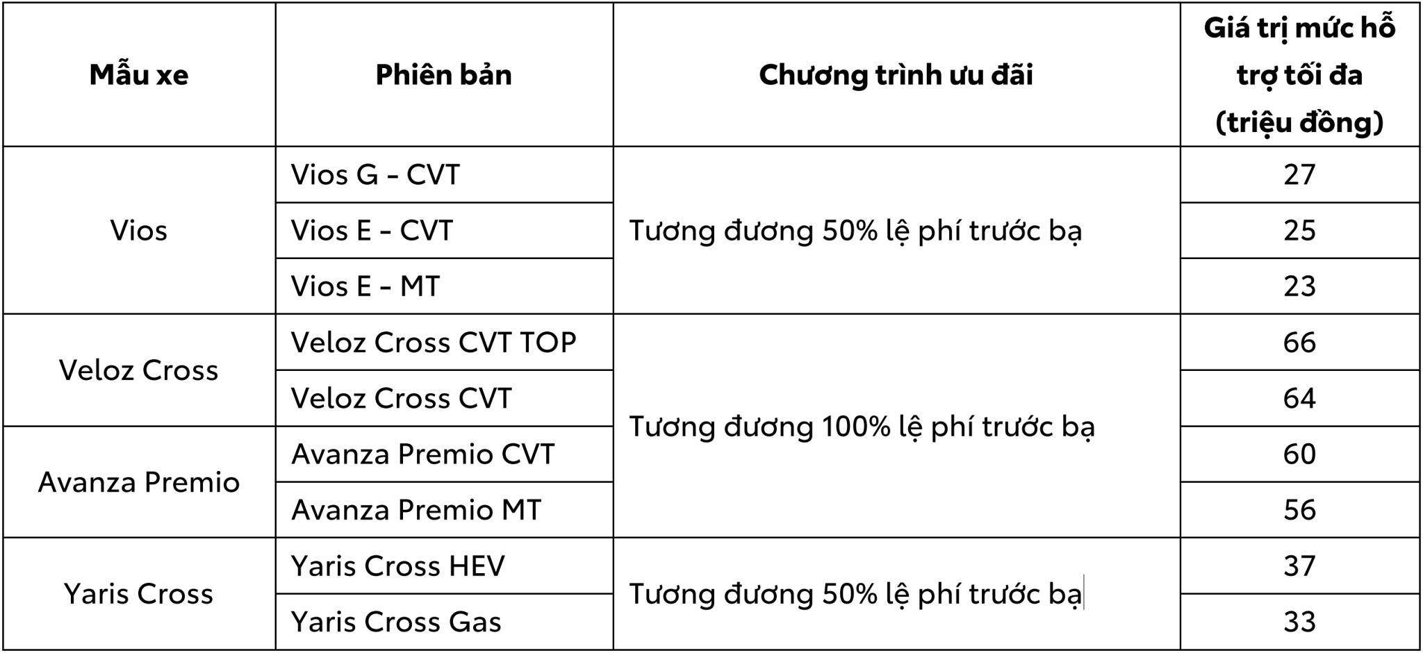 Nhằm thu hút thêm khách hàng, từ nay đến 31/3/2026, TMV và Công ty Tài chính Toyota Việt Nam (TFSVN) cùng hệ thống các đại lý trên toàn quốc triển khai chương trình khuyến mại như sau: